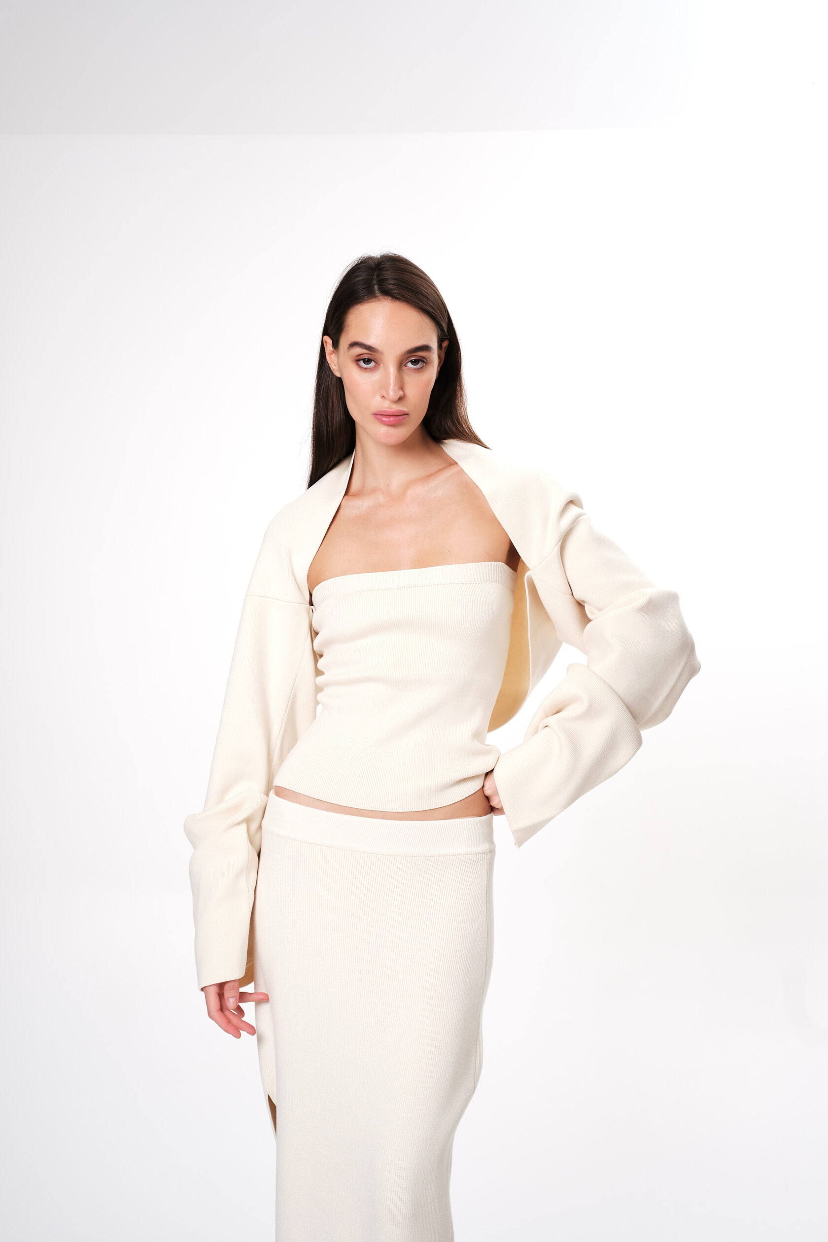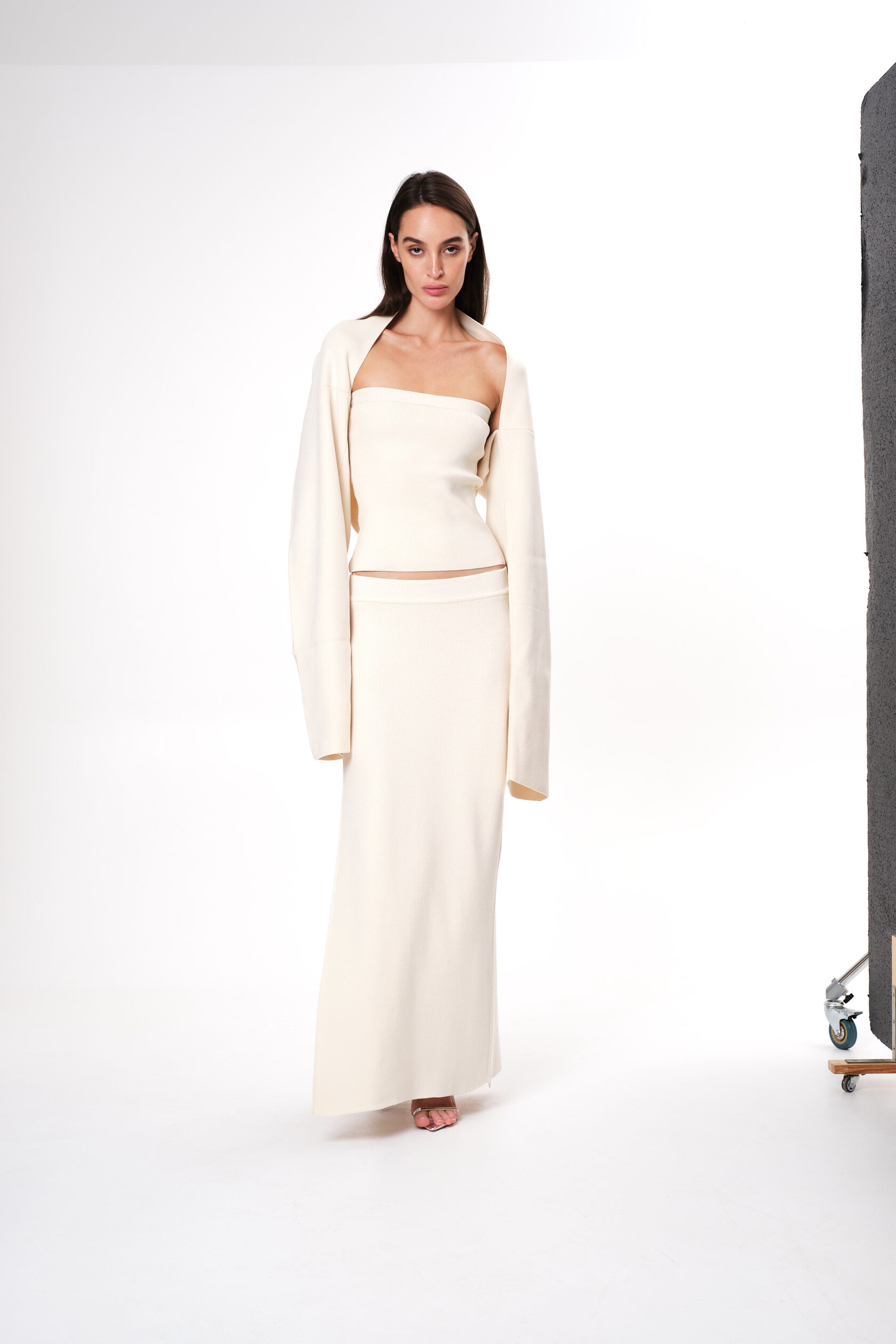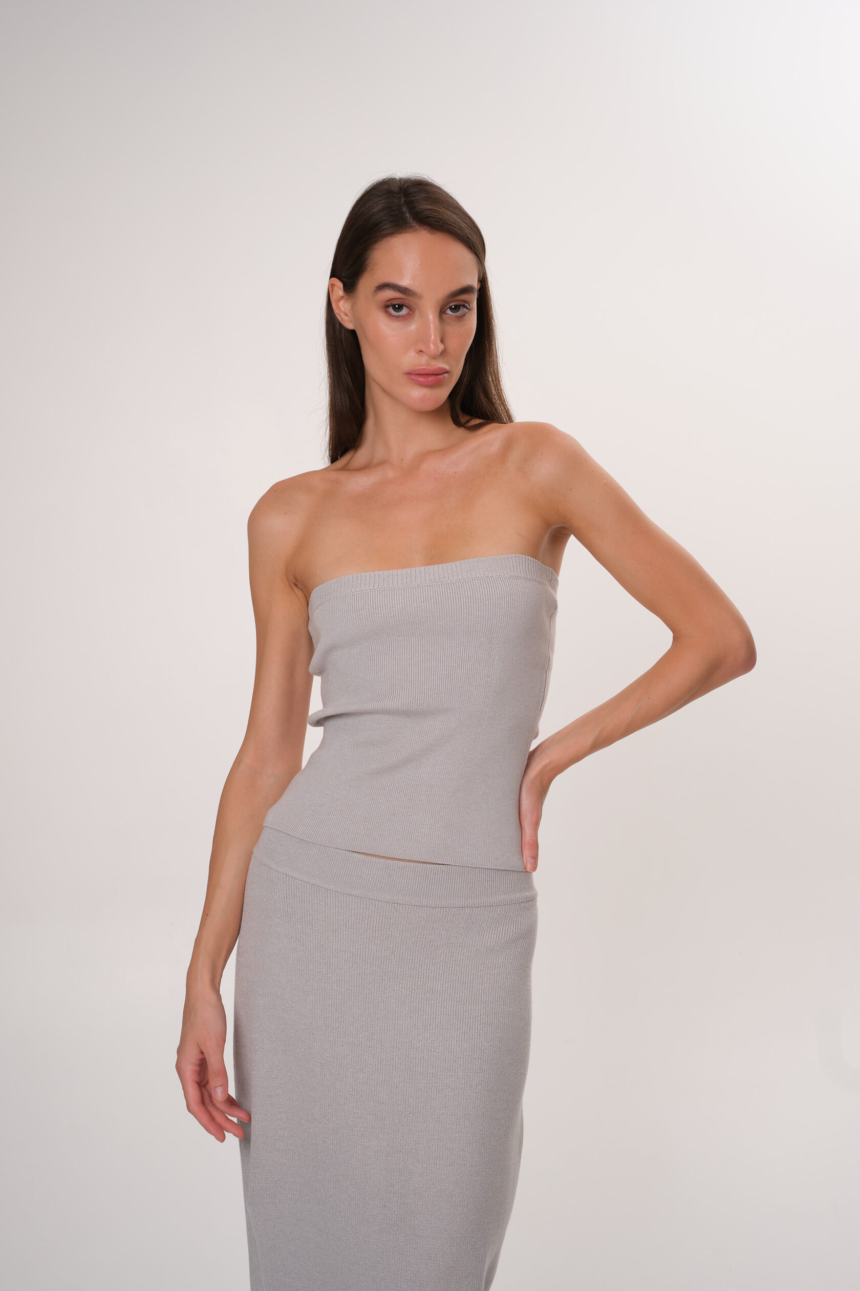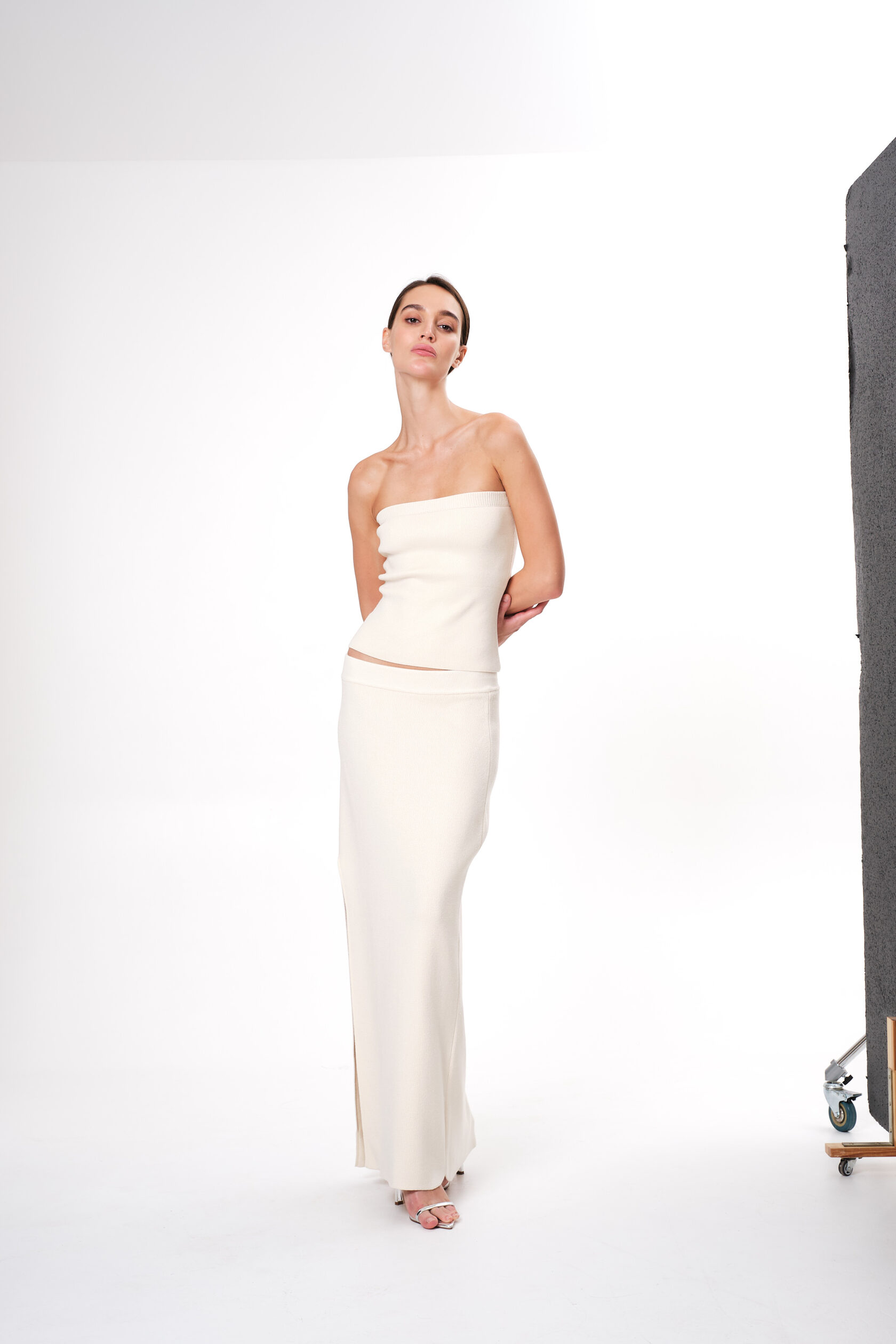 Вязанный Сет #4 состоит из топа бандо с юбкой. Вискоза 90%/Эластан 10% Onesize